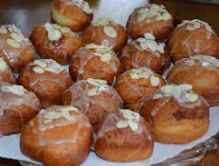Milch in einem kleinen Topf anheizen, Zucker , Hefe, Mehl zugeben. Den Teig an einem warmen Ort gehen lassen. Restliche Milch anheizen , Schmalz schmelzen, Butter und Zucker zugeben. Alles zu einem glatten Teig kneten. Zugedeckt aufgehen lassen. Den Teig zu Kugeln formen, mit Marmelade oder Konfitüre füllen, für einige Minuten aufgehen lassen. Teigkugeln portionenweise im Öl fritieren.